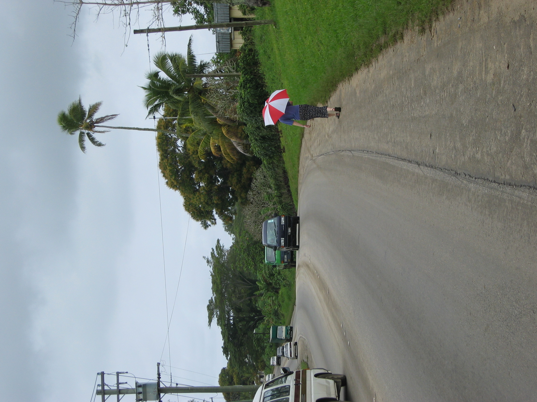 Cherie hiding under the brolly.